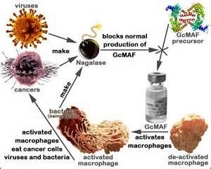 GcMAF appears to be a linking factor. This is covered extensively down the page and today I received this holistic medicine document “Who is KILLING THE HEALERS and Why?” by Foster Gamble. He outlines much of what I have below and in addition supplied this diagram of how GcMAF work.